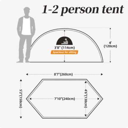 1-2 Person Lightweight Backpacking Tent – Waterproof Tent for 3 Season, Ultralight Camping Tent for Outdoor, Easy Setup for Sports, Hiking, Travel by