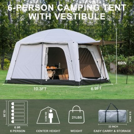 4-6 Person Camping Tent, Large Family Cabin Tents with Porch & Rainfly, Double Layer Waterproof Glamping Tent with 2 Rooms 2 Doors, Portable Big Tents for Outdoor Camping Hiking Party