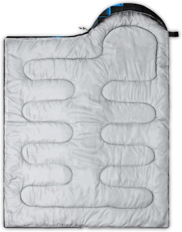 - Double Plus Size: the sleeping bag features a spacious rectangular design for maximum comfort,it accommodates 2 people up to 7 feet tall allowing for ample stretching space;The separate bottom zipper facilitates ventilation for temperature control