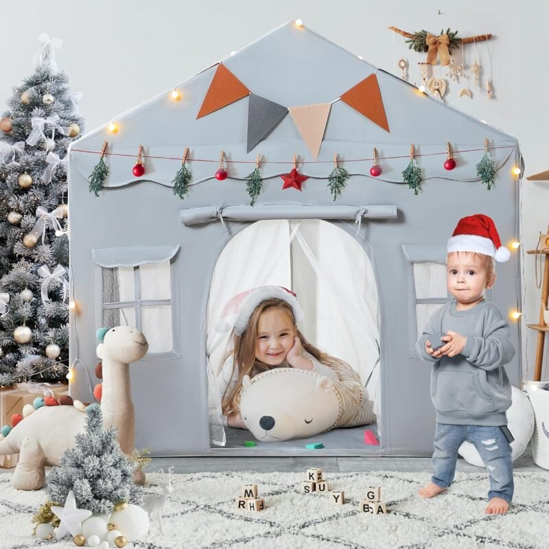 - PREMIUM FABRIC & STURDY FRAME: This playhouse features machine-washable, high-quality polyester fabric, ensuring comfort and easy deep cleaning. The robust fiberglass pole frame is designed to withstand active play and endure for an extended period. The play house is built to resist damage from use and can handle high temperatures without any issues.